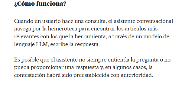 Por ello, EL PAÍS se convierte en uno de los pioneros en integrar este tipo de asistentes de inteligencia artificial en España. Vera EL PAÍS es una herramienta impulsada con IA que responde a los comentarios y preguntas de los usuarios premium. Cabe destacar que esta herramienta ha sido desarrollada con la tecnología de OpenAI, con la que PRISA Media alcanzó un acuerdo de colaboración hace un año.